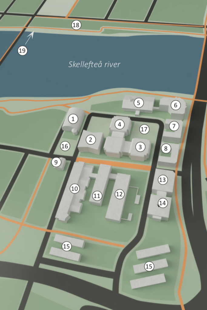 Green Flight Academys utbildningscenter ligger i universitetsområdet, mitt i stadens centrum, på en höjd med utsikt över Skellefteälven som skär genom staden. Med två universitet, en yrkeshögskola, forskningsparker och företagskontor samlar campus en unik mix av kreativa människor – studenter, forskare och affärsproffs.